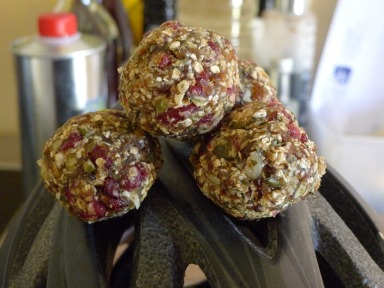 Nutmeg would like to share this recipe, which, is not remotely Française and certainly would be considered highly unappealing to any self-respecting French person. However, this simple no-bake combination is perfect for biking, hiking or other outdoor activities. These Sunflower Seed Balls are extremely easy to make, last for a long time, do not melt and they are healthy. The best part is you can alter the ingredients, to suit your taste. The version in the photo below included cranberries.