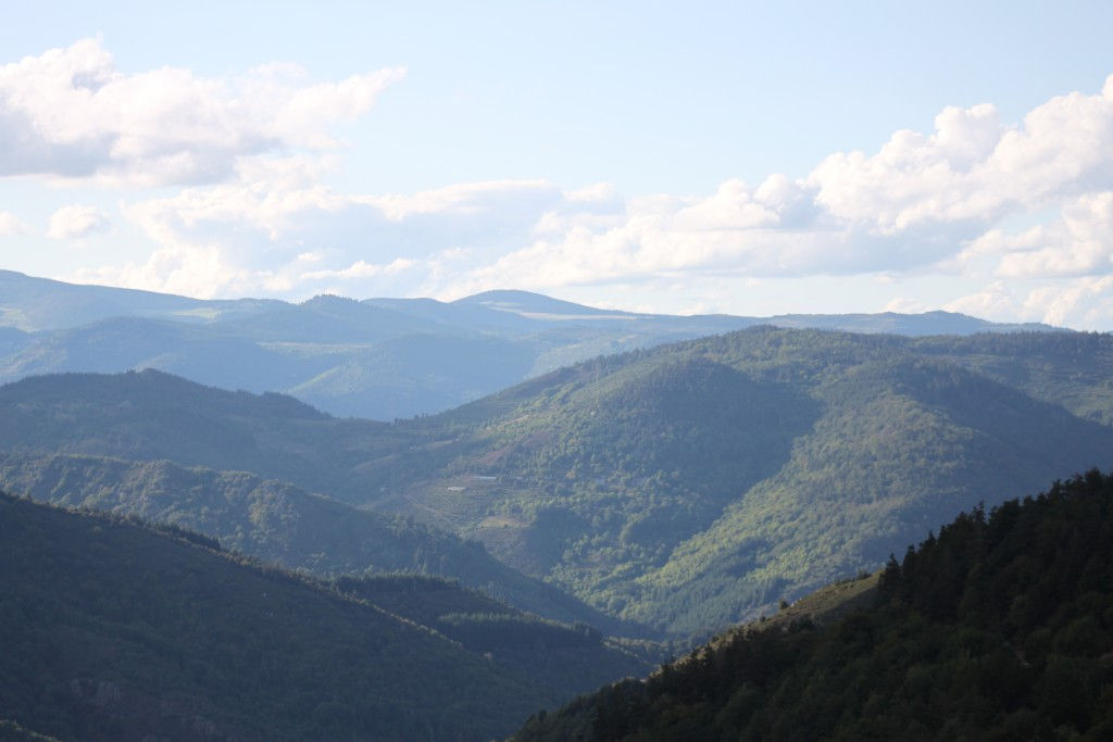 Although, the eastern edge of the Ardèche is close to the significant north-south autoroute (A7), a visitor can quickly leave the bustling traffic behind. The landscape at the northern end of the Ardèche is dense forests of oak, pine and chestnut. The roads are small and windy, much like in Corsica. Small hamlets dot the landscape along with fields of cows. The architecture in the northern Ardèche is stern, with buildings made of stone blocks and pitched roofs to keep out the elements, no whimsical Provencal colours in this area.